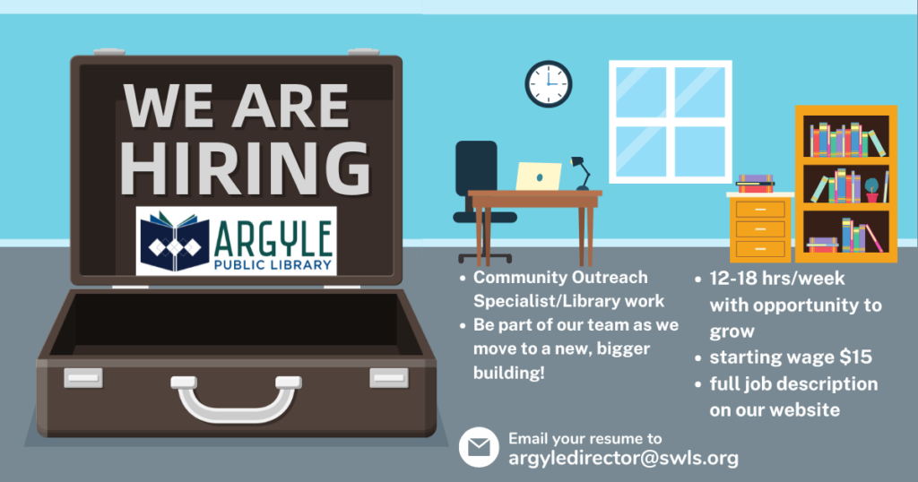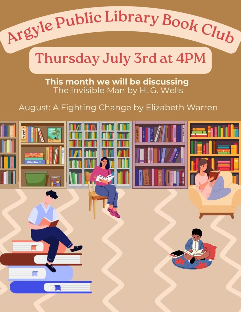 The Friends of the Argyle Public Library meet the third Tuesday of each month at 4pm.